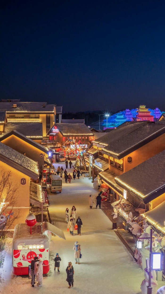 山下的长白山粉雪小镇更是年味浓郁、热闹非凡。云顶市集、恩都里、雪绒花、麓角村、金1172等点位灯火璀璨、暖意融融,喜庆的灯笼映照着游客的笑脸,各类特色商铺琳琅满目,吸引众多游客尽情感受冰雪天地里的温暖与欢乐。