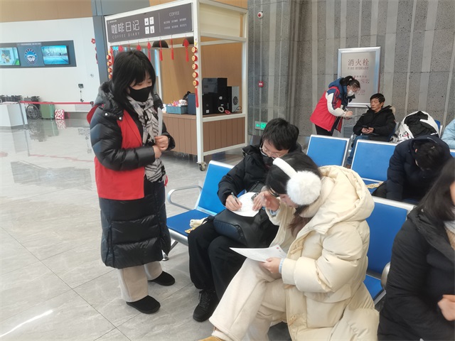 与此同时,部分志愿者手拿《长白山访客有奖问卷》向休息的旅客进行问卷调查。通过问卷掌握旅客期待的游玩项目,服务方面看法以及建议等信息,及时了解游客的需求和问题,有针对性地采取合适的措施进行处理,给游客提供更好更优质的服务。
