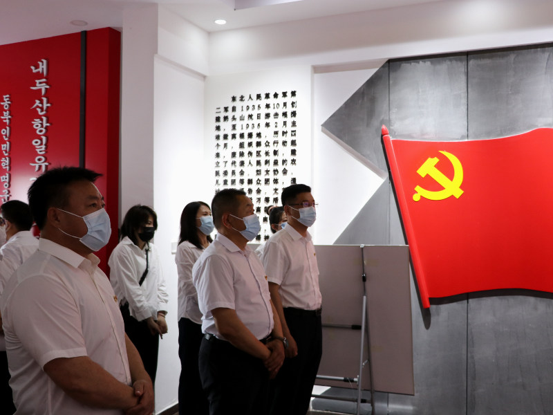 在奶头山抗日游击纪念馆,党员、积极分子认真聆听东北人民革命军第二军抗日故事,一幅幅珍贵的老照片,一件件历史文物,一个个真实故事,仿佛重现着革命前辈用生命书写的峥嵘岁月。在“王德泰军长纪念碑”前,全体党员、积极分子纷纷献上鲜花致敬,面向鲜红的中国共产党党旗举起右拳郑重宣誓,表达了为党奋斗的坚定政治信念、无限忠诚和热爱;围绕如何守初心、担使命展开了热烈讨论。