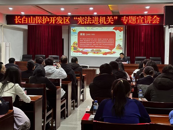 12月5日,为提升全区普法依法治理成员单位干部依法行政能力,司法局特邀律师开展长白山保护开发区“宪法进机关”专题宣讲会,系统解读习近平法治思想与宪法核心要义,既有理论高度又有实践深度,为法治政府建设注入强劲动力。