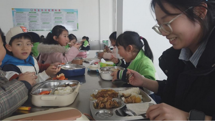 午餐时段,校长如往常一样坐在学生中间,亲切交谈,询问饭菜口味与营养搭配情况。这是我区各个学校每天中午的常态——校长陪餐制,让管理者真正走进学生群体,及时了解就餐情况,实现问题在一线发现、诉求在一线回应、整改在一线落实。