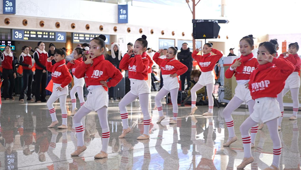 身着红色舞衣的小朋友们元气满满,踩着欢快节拍灵动起舞,以动感活力的舞姿演绎了《新春送吉祥》,瞬间点燃全场热情,掌声喝彩声不绝于耳。