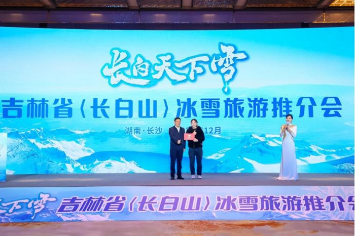 金冬时节长“湘”伴,玩雪赏凇乐无边。近年来,长白山整合优势资源,不断发力冰雪旅游产品打造,一批特色冰雪产品吸引众多游客慕名而来。为落实吉林省委、省政府将旅游业打造成“万亿级”产业发展目标,不断提升“长白天下雪”文旅品牌在国内的知名度和美誉度,12月6日,由吉林省文化和旅游厅、长白山保护开发区管理委员会主办,长白山管委会旅游和文化体育局承办的“长白天下雪”吉林省(长白山)冰雪旅游推介会在长沙举办。