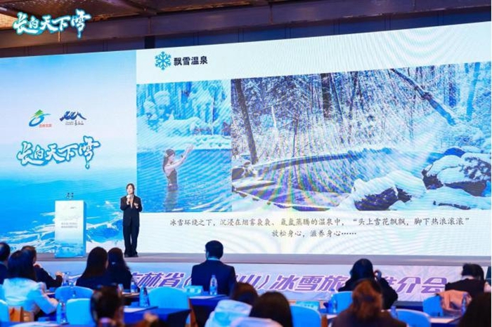 推介会现场进行了新雪季长白山重点冰雪产品推介。长白山将巩固提升既有旅游项目和产品,提升品位内涵,精心组织长白山粉雪节系列活动,推出雪山温泉季、冰雪运动季、雪镇美食季、中法文化季等“四季”文旅活动。全新升级打造长白山飘雪温泉,开启长白山之旅最火热的方式。承办专业及大众多项品牌赛事,包括2024年国际雪联的亚洲杯赛事等。举办冰雪美食节,依托朝鲜族文化、满族文化、关东民俗、特色物产推选名店名品,打造特色美食街区。以2024中法文化旅游年为契机,举办长白山-勃朗峰“聚力双峰 绿色发展”冬季旅游研讨会、长白山国际滑雪登山挑战赛等活动,扩大冰雪旅游国际影响力。