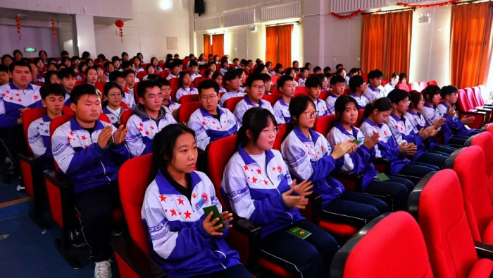 仪式在雄壮的国歌声中拉开帷幕,全体师生肃立,向国旗行注目礼,嘹亮的国歌声响彻会场,激荡着在场每个人的爱国情怀。随着庄严的入团仪式开始,新团员胸前佩戴上熠熠生辉的团徽,这枚小小的团徽犹如希望的火种,点燃了新团员们为集体奉献、为国家奋斗的炽热初心。