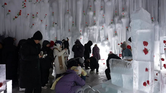 夜幕下,冰心岛情歌串烧温情开唱,与DR联手打造的黄金冰心岛将玫瑰与冰雪相融,心形背景成摄影新亮点。据了解,该项目以生态保护为前提,探索文旅融合新模式,依托沈白高铁沿线旅游联盟吸引国内外游客,为我区冰雪经济转型升级赋能。未来,麓角村将持续优化业态与服务,让游客邂逅冰雪童话,感受长白山生态与文化之美。