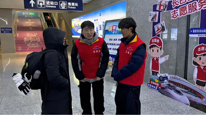 2月3日,记者在长白山站看到,由长白山党工委社会工作部组织的长白山旅游志愿服务队,身着统一“志愿红”马甲,成为冬日旅途中最温暖的风景线。新春出行高峰将至,志愿者们坚守岗位、热情服务,耐心为往来游客提供出行咨询、路线引导、行李帮扶等暖心服务,用专业素养与真诚热情传递长白山温度,擦亮长白山文旅服务名片。新雪季以来,这支志愿服务队伍深入长白山机场、游客集散中心、恩都里、雪绒花、云顶市集等长白山保护开发区重要交通枢纽与核心景区,以常态化、专业化的志愿服务机制,为游客出行保驾护航,助力长白山旅游产业高质量发展。